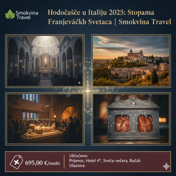 Ključne riječi: Hodočašće u Italiju 2025, Asiz putovanje, Padre Pio turneja, Carlo Acutis grob, hodočašće iz Splita, Smokvina Travel izleti.