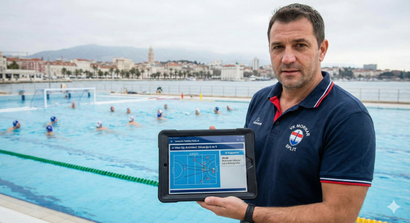 Mogu li igrači učiti taktike izvan bazena? Da, treneri šalju interaktivne animacije izravno na mobitele igrača radi lakše pripreme utakmice.