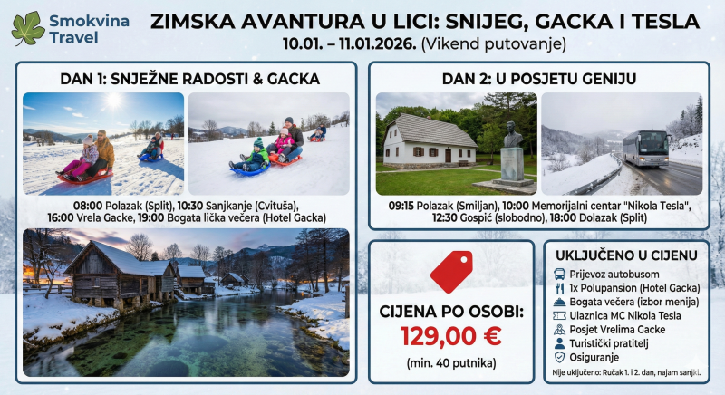 Zimska Lika 2026: Sanjkanje, Gacka i Tesla – Vikend iz snova!(ID: AR-2694)