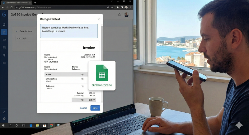 Go360 Invoice Gen je napredni asistent za fakturiranje koji razumije kako ljudi zapravo komuniciraju. Umjesto ručnog ispunjavanja kompliciranih polja, ovaj alat koristi Natural Language Parsing (NLP) – dovoljno je napisati: "Napravi ponudu za Marka Markovića za 5 sati konzaltinga i 2 licence" i sustav će automatski prepoznati klijenta, usluge i cijene. Razvijen s fokusom na hrvatsko tržište, alat je potpuno lokaliziran i usklađen s domaćim formatima. Njegova najveća snaga leži u Google Sheets integraciji: svaki generirani račun ili ponuda automatski se bilježi u vašu centralnu tablicu, omogućujući vam praćenje prihoda i analitiku u realnom vremenu bez dodatnog unosa podataka.