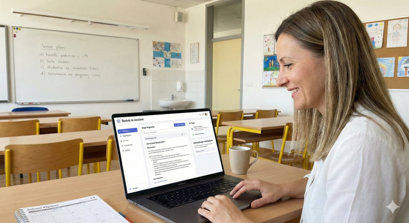 Što je Školski AI Asistent? To je platforma temeljena na umjetnoj inteligenciji koja pomaže nastavnicima u pripremi nastave, a učenicima i roditeljima u lakšem praćenju školskih obveza.