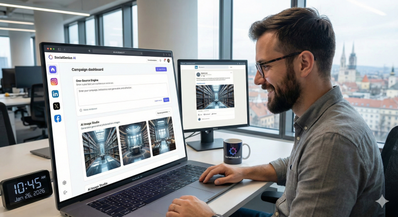 BookYour SocialGenius AI predstavlja revoluciju u stvaranju digitalnog sadržaja za 2026. godinu. Više nije potrebno angažirati dizajnere i copywritere za svaki post. Naša platforma koristi Gemini 1.5 Pro i Nano Banana modele kako bi dekonstruirala vaš osnovni tekst i automatski generirala: prilagođene objave za Instagram, LinkedIn, X i Facebook, te pripadajuće visokokvalitetne AI slike koje savršeno odgovaraju tonu poruke. Sustav ne samo da piše, već i "vidi" vašu viziju, osiguravajući vizualnu dosljednost brenda na svim platformama. Idealno za autore, male poduzetnike i agencije koje žele skalirati svoju prisutnost bez povećanja troškova.