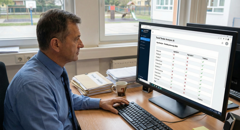 Što je Travel Tender Analyzer AI? To je alat za školsku administraciju koji analizira ponude agencija prema uvjetima natječaja.