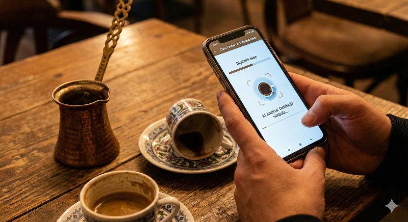 Kako funkcionira AI gatanje iz kave? AI analizira oblike u talogu kave koristeći prepoznavanje slika i interpretira ih prema bazi tradicionalnih značenja.